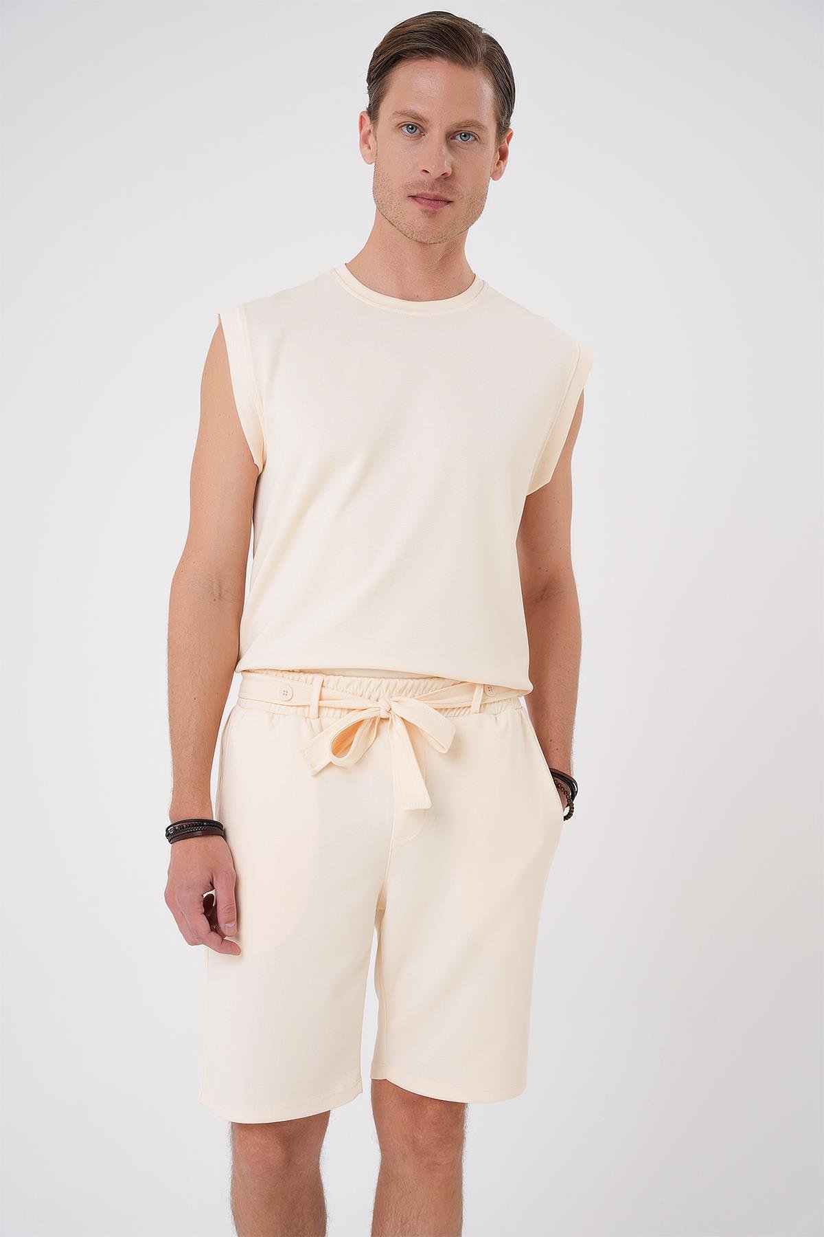 Bermuda 035 Comfort Fit Bağcıklı Bel Viskon Karışımlı Casual Bej Şort (BRD35Y0125)