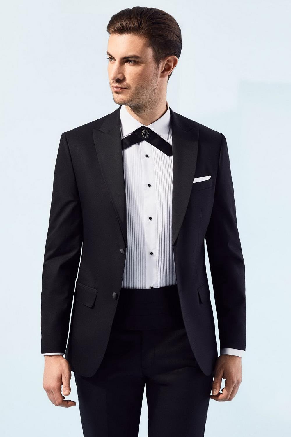 Black 049 Slim Fit Çıkma Saten Yaka Siyah Damatlık Smokin Takım