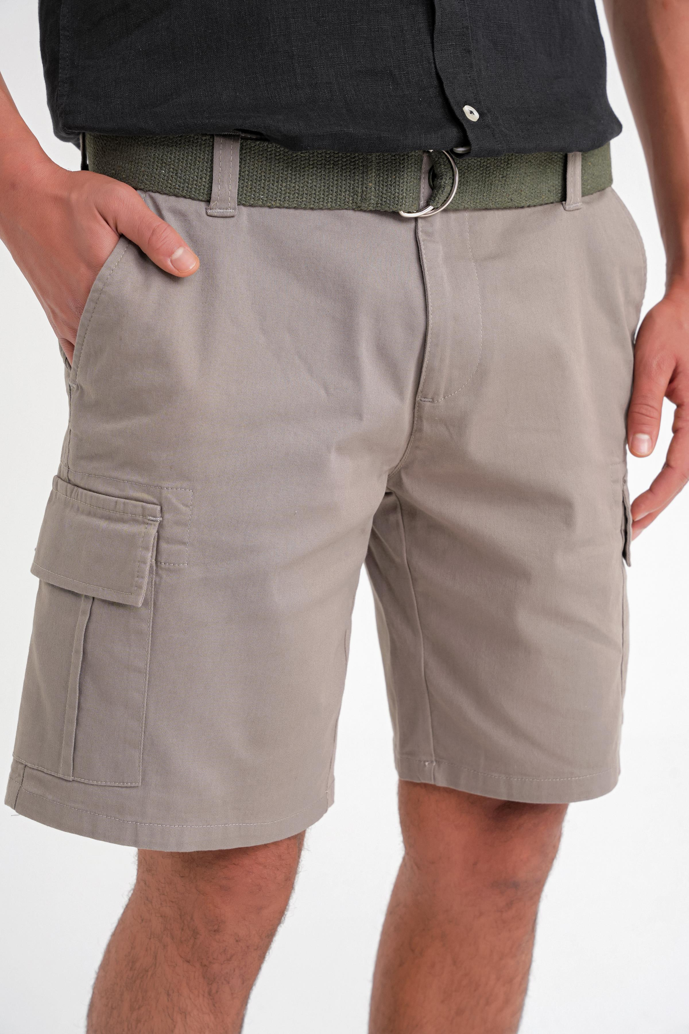 Comfort Fit Beli Kemerli Kargo Cep Pamuk Casual Haki Şort Bermuda 039 (BRD39Y0425)
