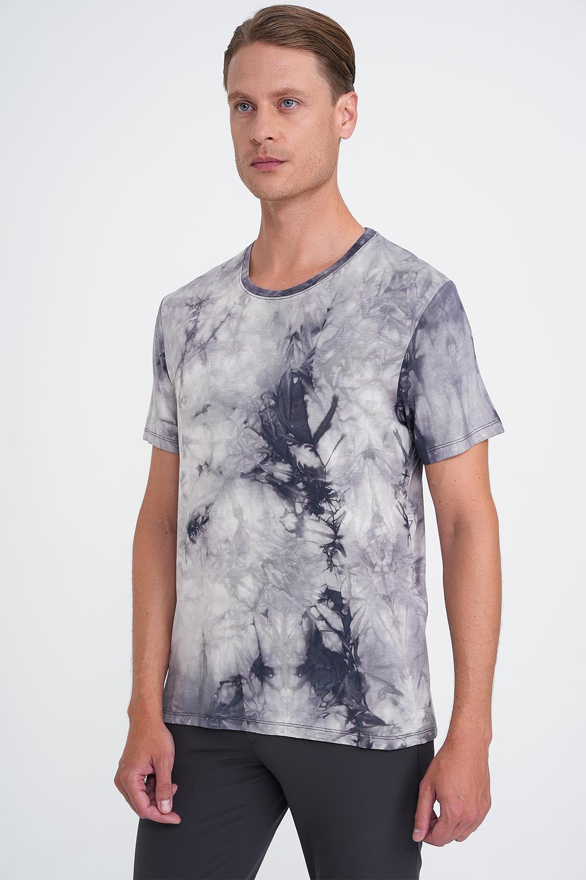 Comfort Fit Bisiklet Yaka Batik Desen Kısa Kol Lacivert Tişört Ts 914 (TS914Y0425)