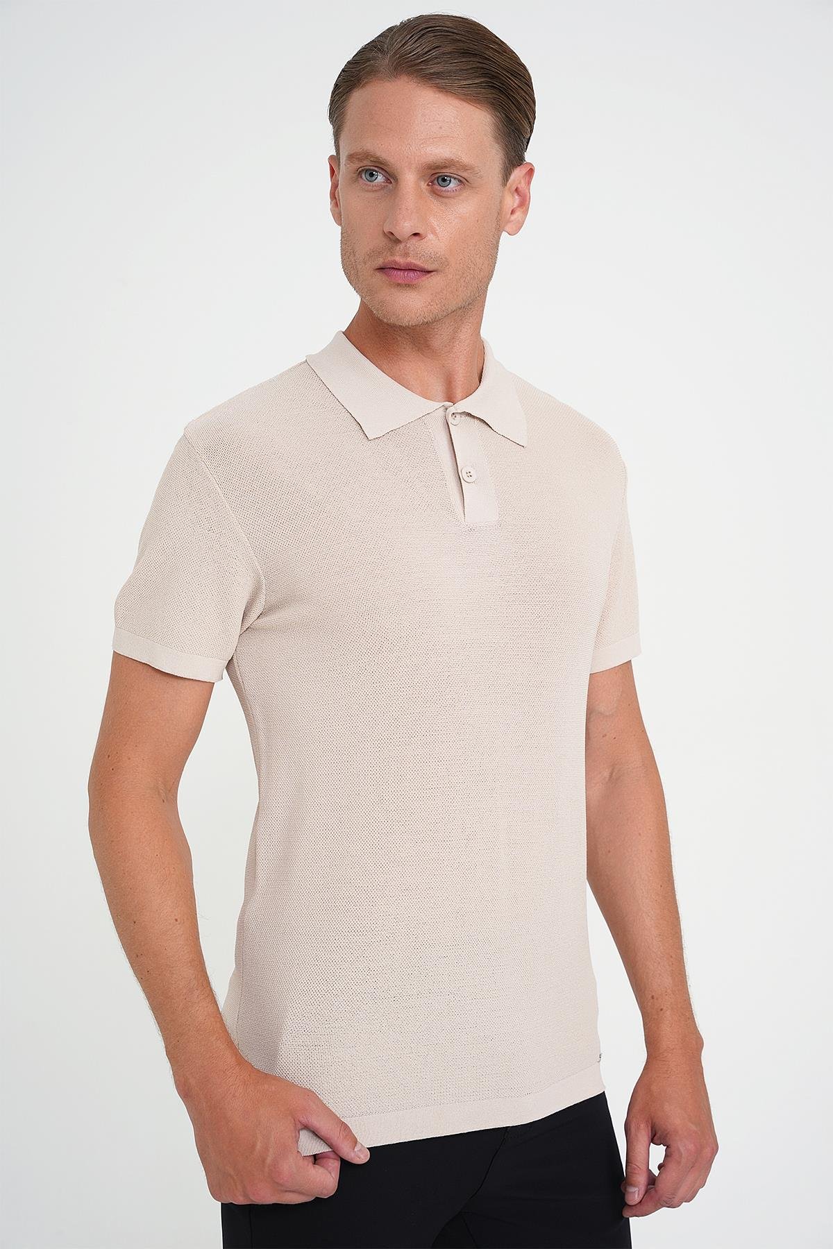 Comfort Fit Polo Yaka Kısa Kollu Bej Triko Tr 883 (TR883Y0125)