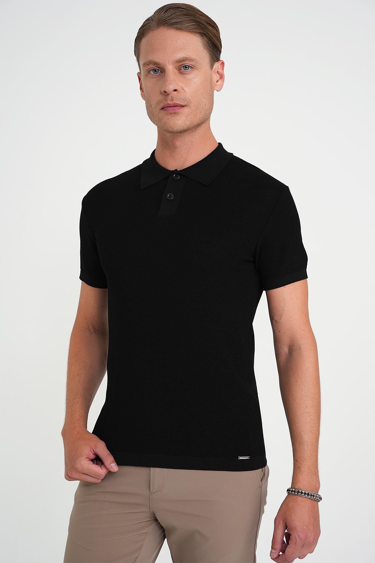 Comfort Fit Polo Yaka Kısa Kollu Siyah Triko Tr 883 (TR883Y0125)