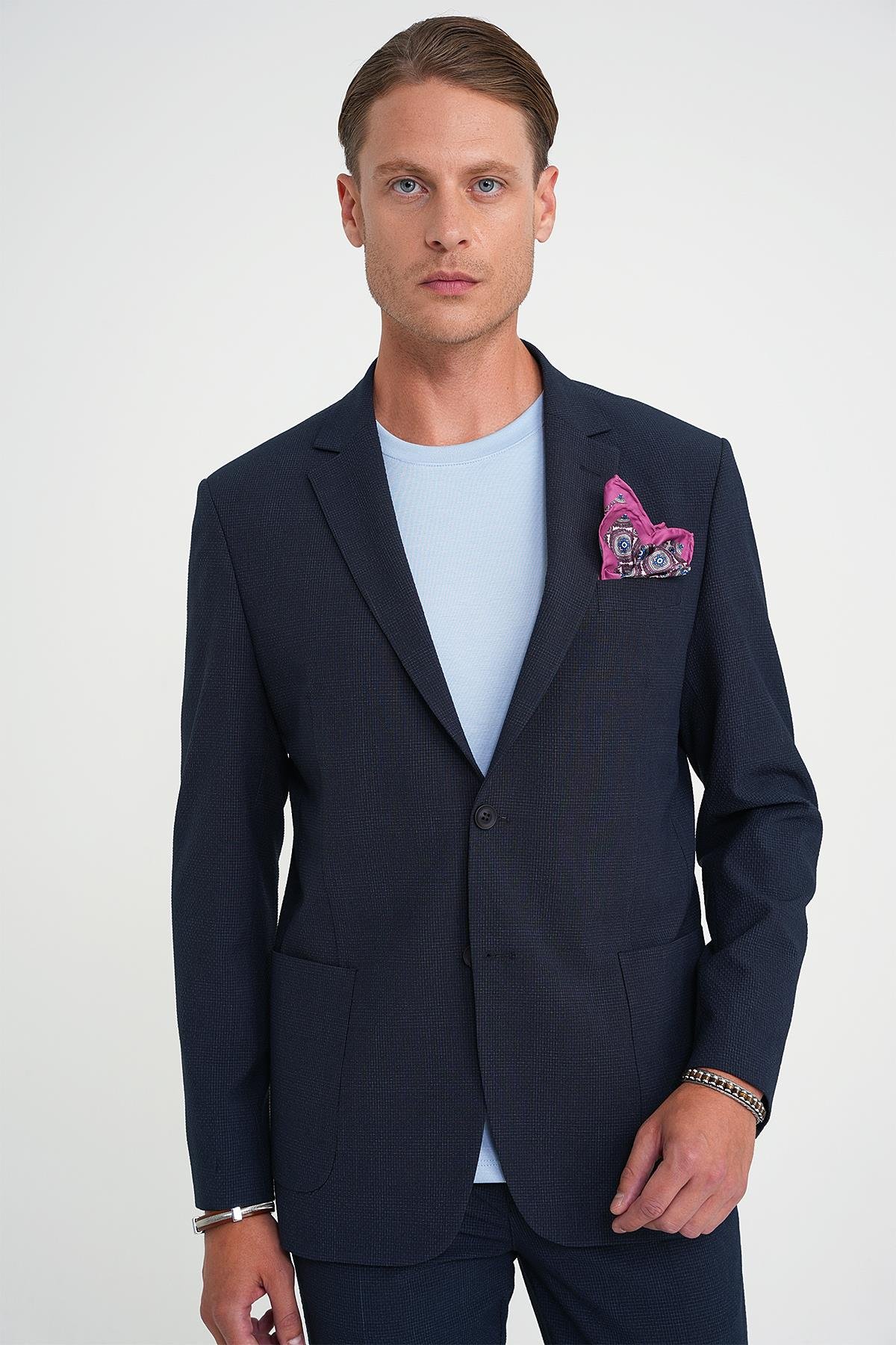 Comfort Fit Torba Cep Çift Yırtmaç Esnek Dokulu Pamuk Lacivert Spor Ceket C 713 (C713Y02025)