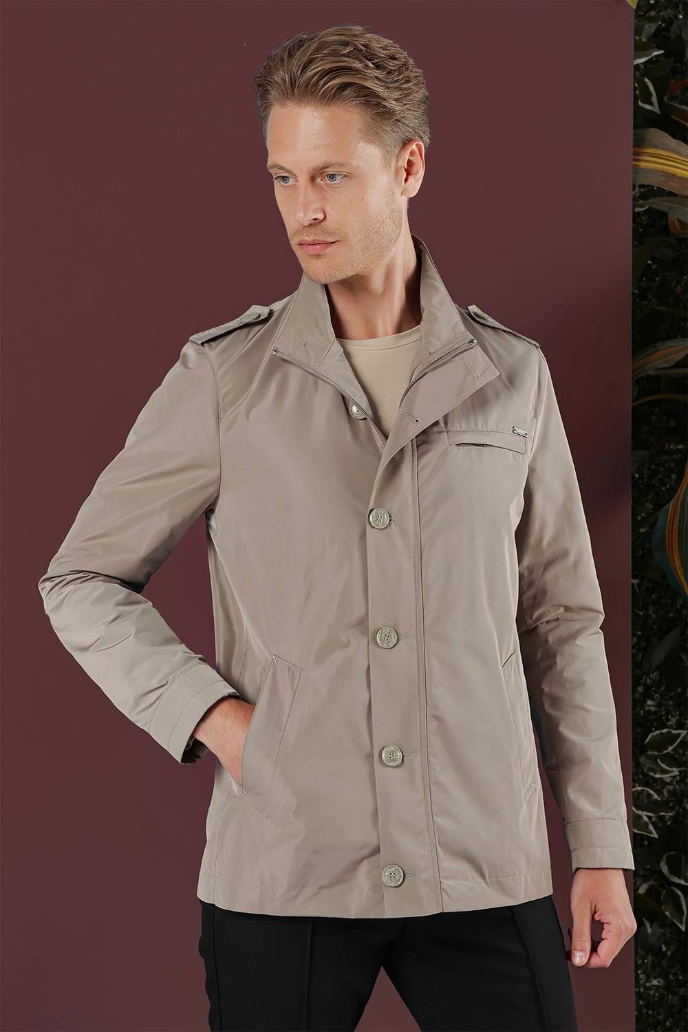 Serin havalarda tarzınıza şıklık katacak bej spor teknik ceket. Hemen hemen pek çok kombinle kullanabileceğiniz kalça hizasındaki bu parça, slim fit kesime sahip.