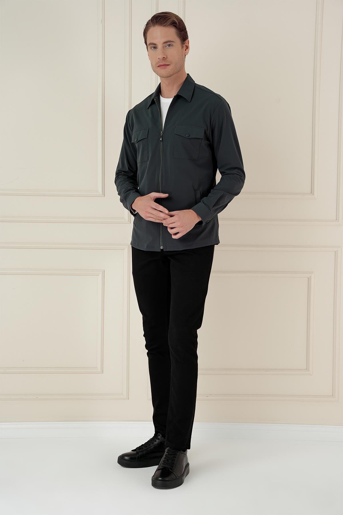 Önden Fermuarlı Yan Cepli Esnek Pamuk Yeşil Ceket Gömlek G 1582