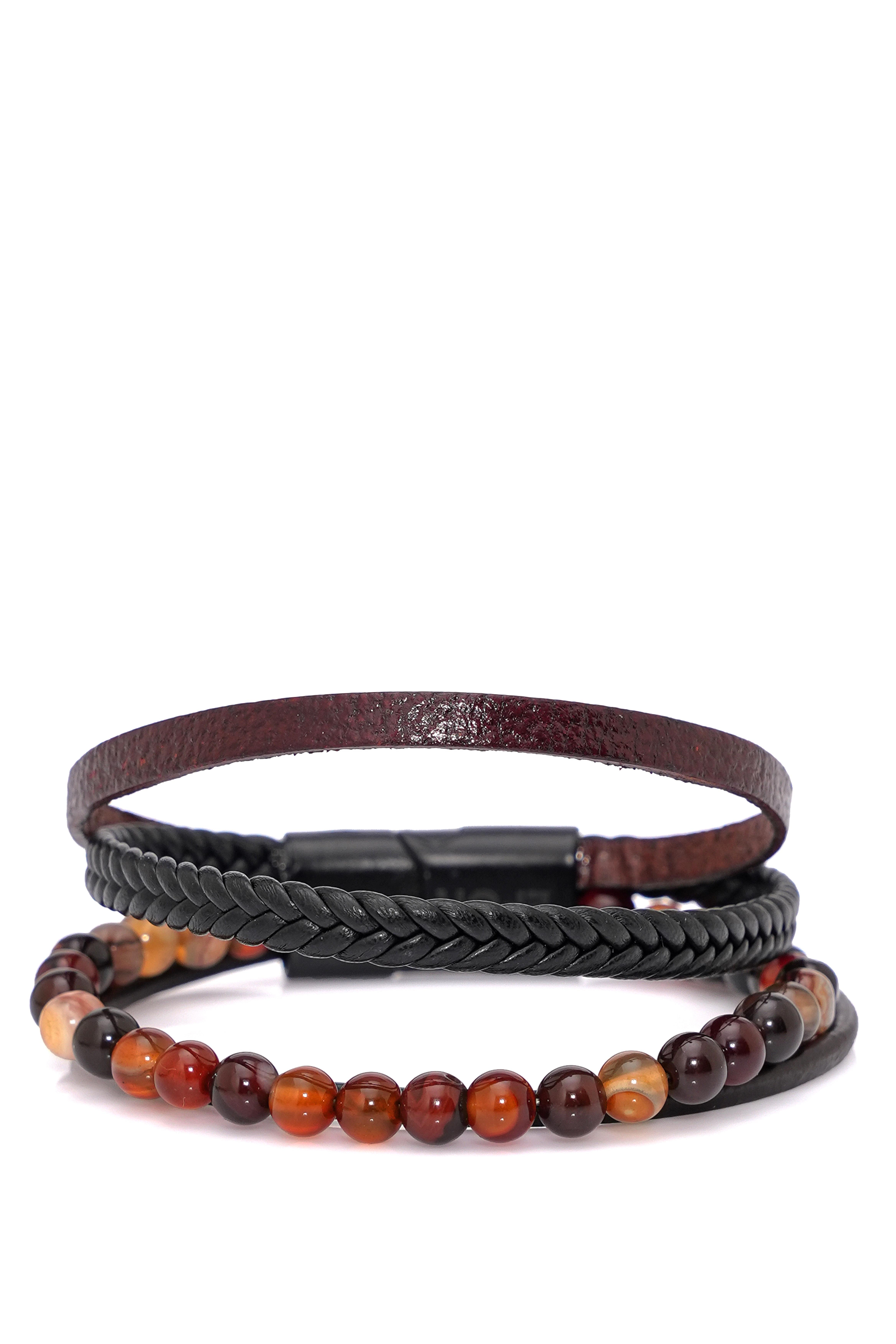 Örgü Deri ve Taş Modelli Akik Bileklik 087 (MODEL2BLK)