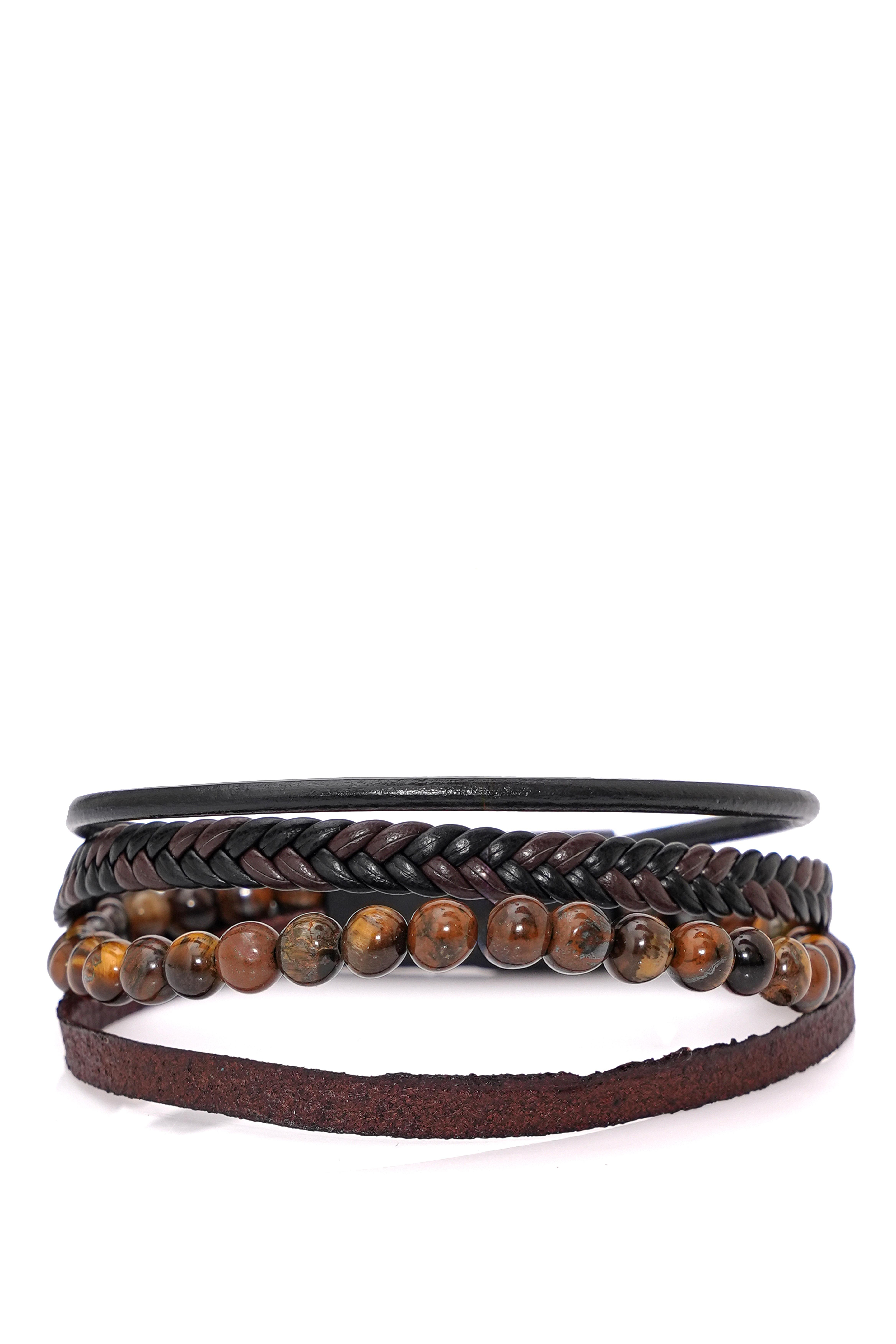 Örgü Deri ve Taş Modelli Kaplan Gözü Bileklik 087