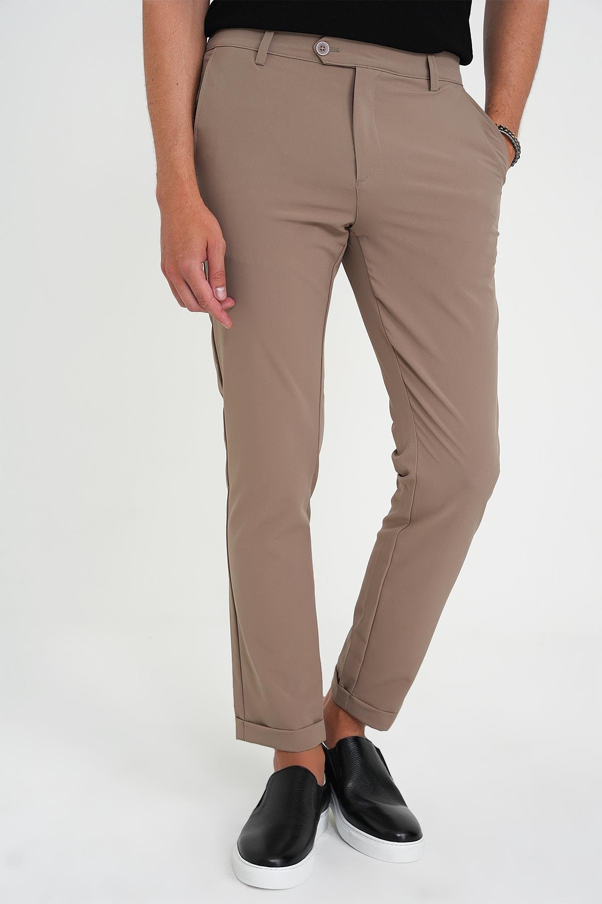 Comfort Fit Beli Lastikli Yan Cep Bej Jogger Pantolon P 1150