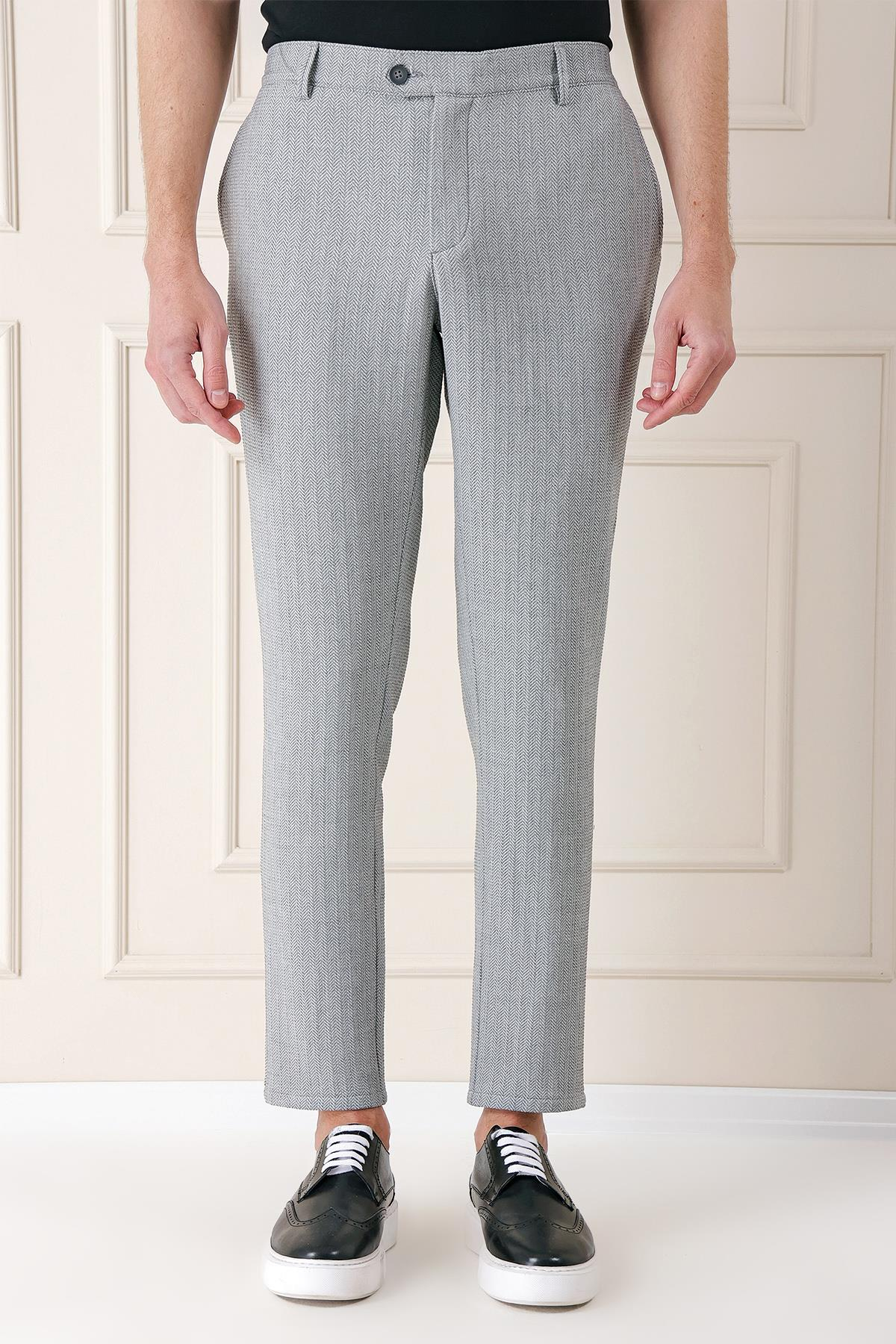 Comfort Fit Beli Lastikli Balıksırtı Dokuma Casuel Gri Pantolon P 1155
