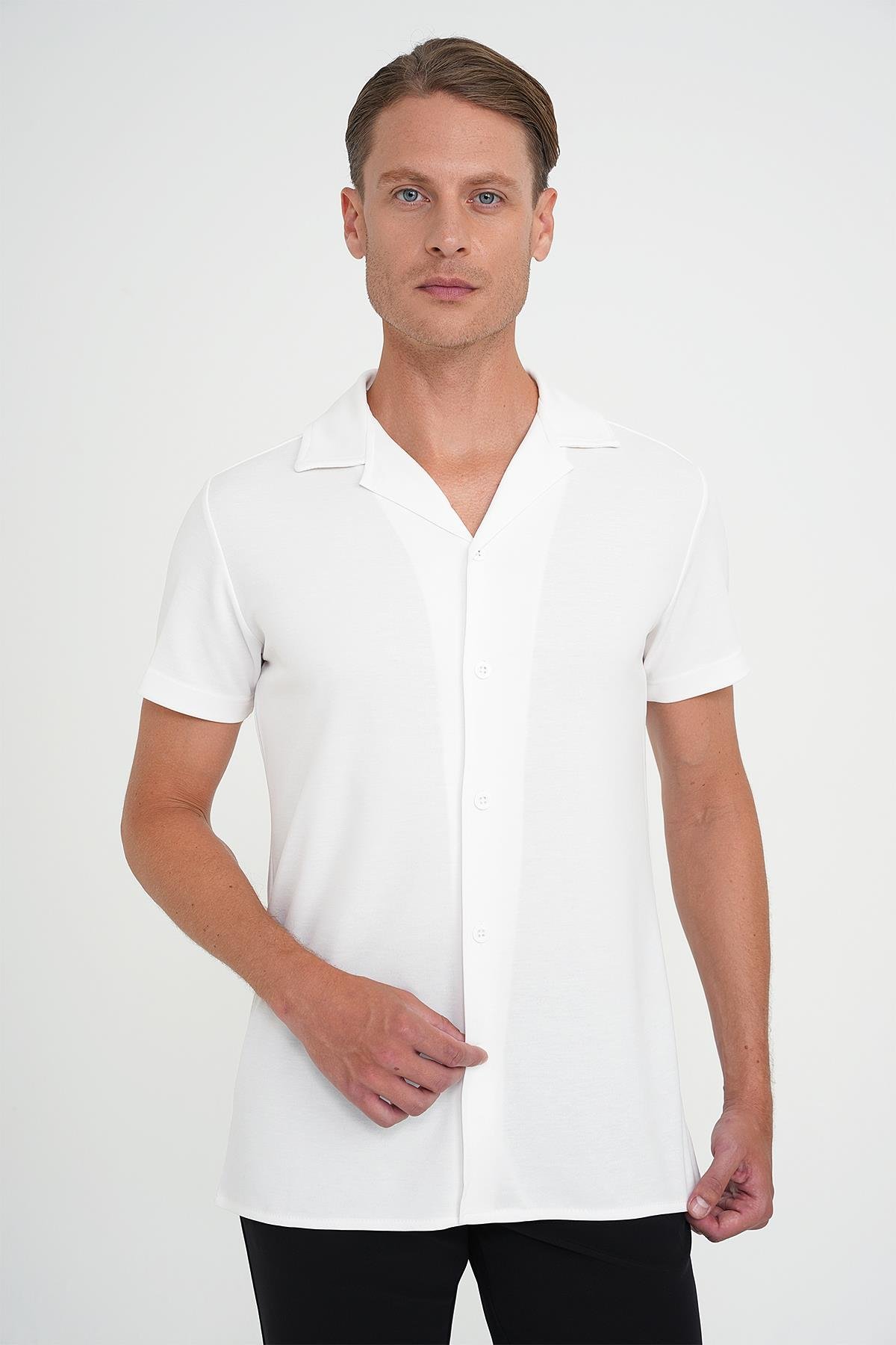 Slim Fit Apaş Yaka Modal Karışımlı Kısa Kol Beyaz Gömlek G 1590