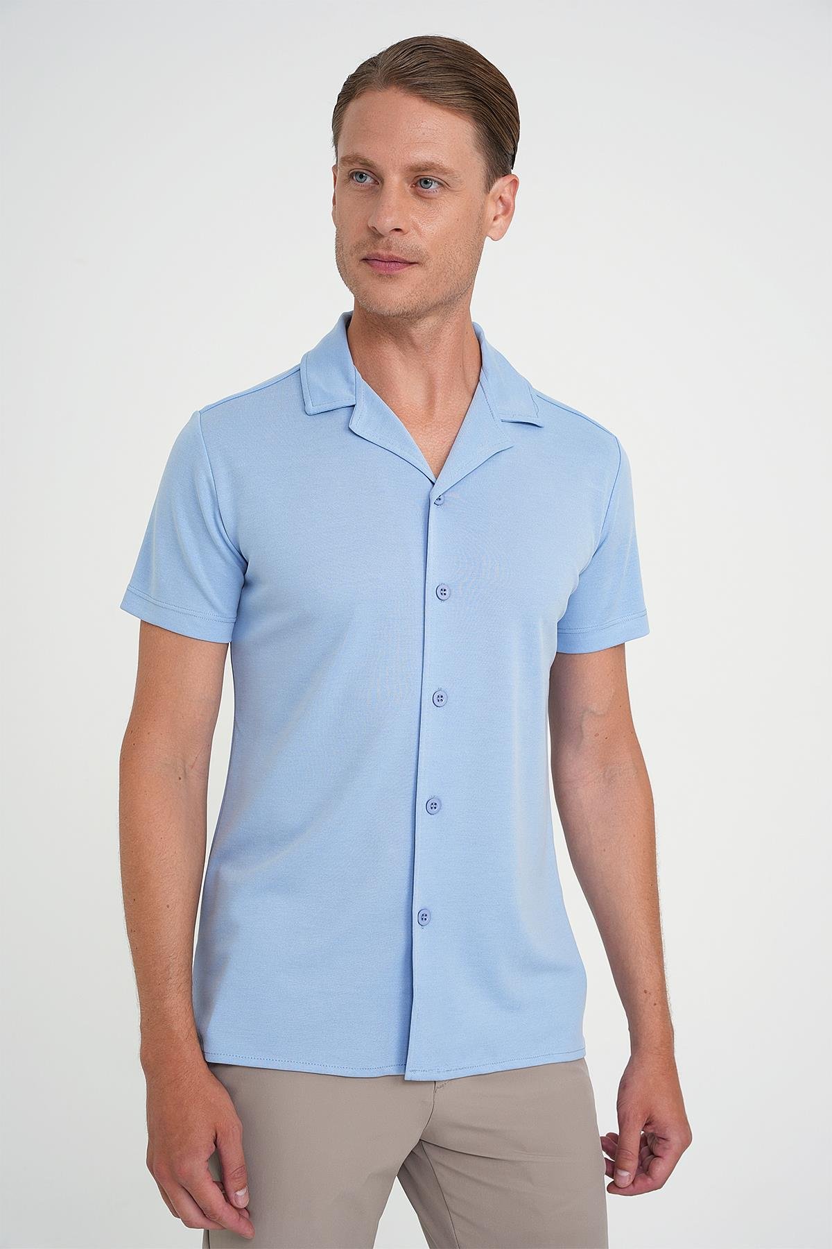 Slim Fit Apaş Yaka Modal Karışımlı Kısa Kol Mavi Gömlek G 1590 (G1590Y0125)