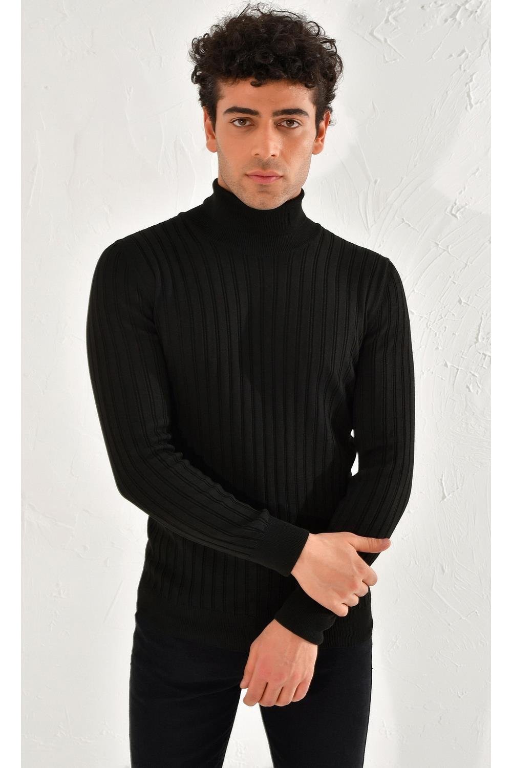 TR 813 Slim Fit Siyah Balıkçı Triko