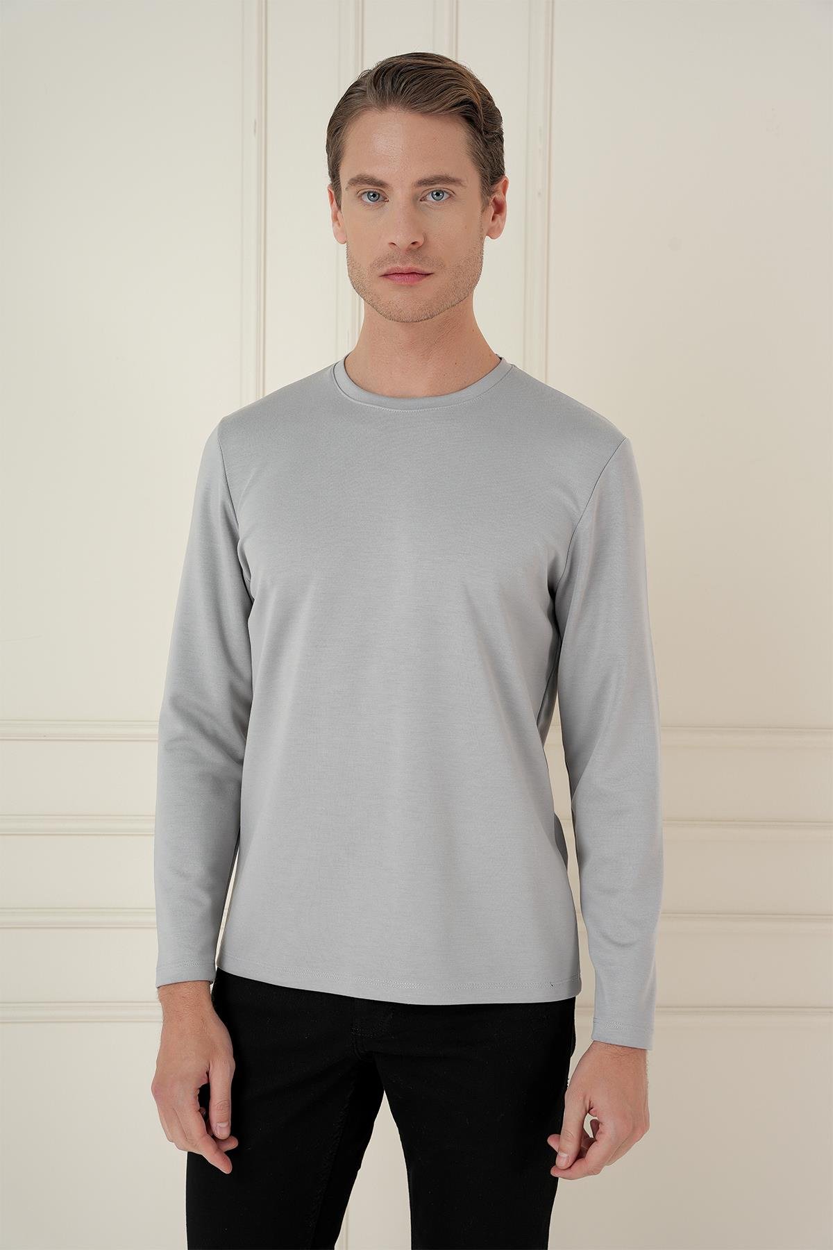 Comfort Fit Bisiklet Yaka Uzun Kol Casual Gri Tişört Ts 892 (TS892K0824)